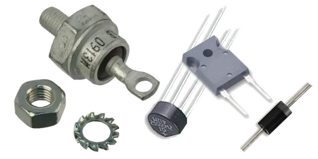 Ce sont des diodes à jonction PN. Elles sont conçues pour des courants et des tensions élevées. Cela justifie leur utilisation dans les alimentations à courant continu; pour tranformer le signal alternatif (positif et négatif) du secteur en un signal positif.