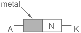 Les diodes schottky sont fabriqué à partir d'une jonction entre un métal et un semiconducteur de type P ou N.