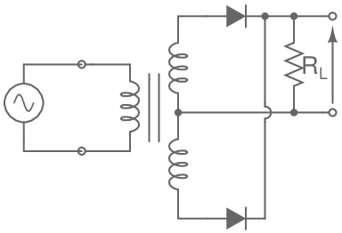 Dans certains cas on peut aussi avoir un redresseur double alternance à deux diodes au lieu de quatre: