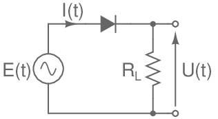 L'anode est connectée à un pôle du générateur (on va supposer que c'est le pôle positif). Lorsque la tension est positive, la diode laisse passer le courant, puis quand cette même tension change de sens la diode se bloque. La diode ne laissera circuler le courant que pendant une demi-période, puis sera bloquée sur l'autre demi-période.