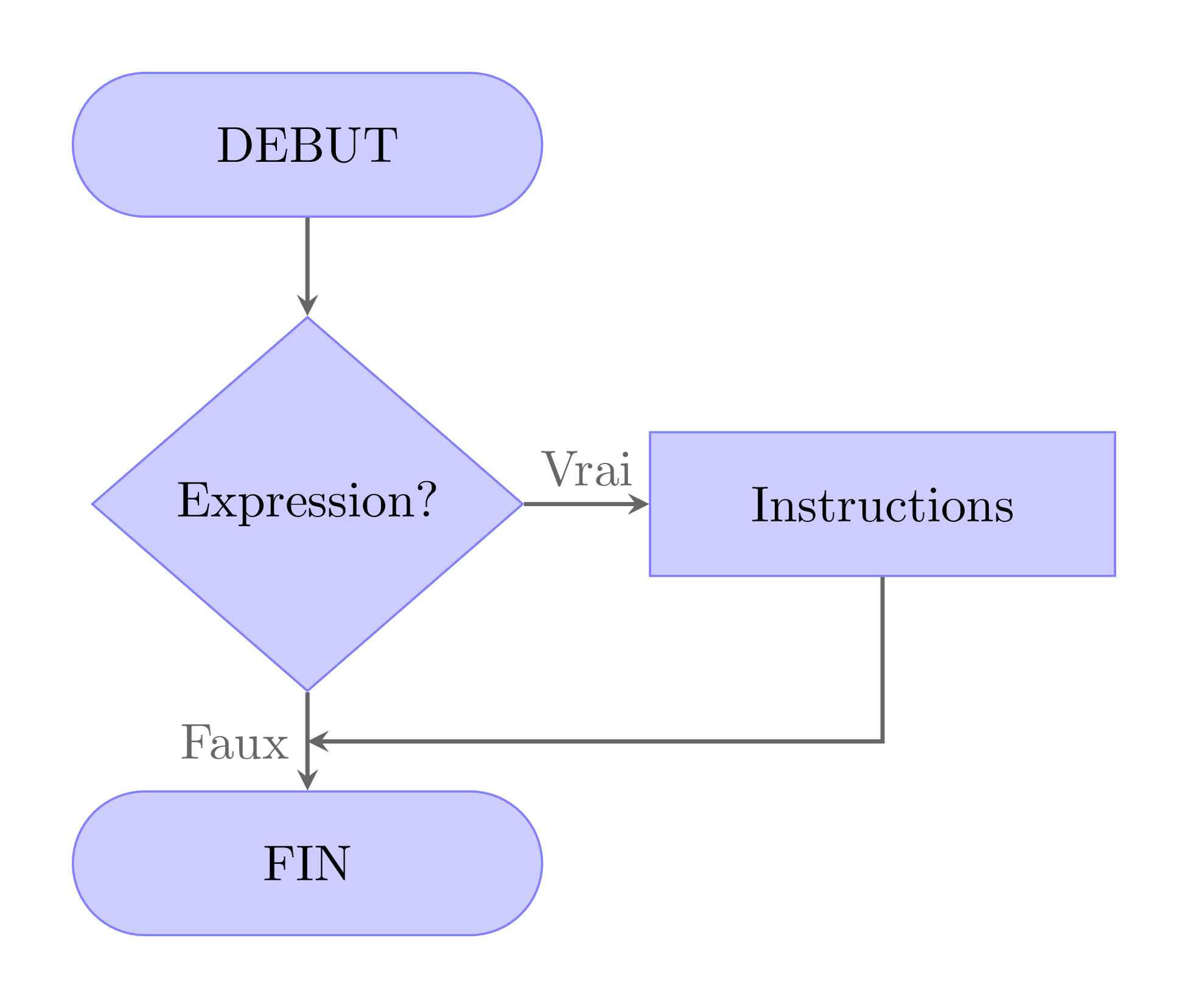 Si le résultat du test de l’expression est vrai alors le(s) instruction(s) sera(seront)  exécutée(s). S’il est faux, les lignes de code situées après le "FIN" de l’instruction " if " sont exécutées.